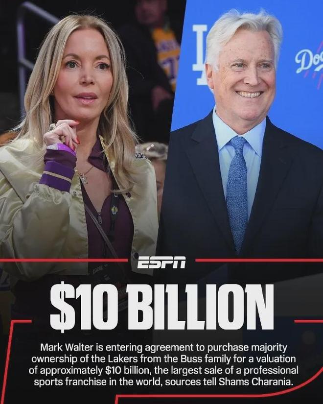 据此前爆料王Shams的报道,沃尔特收购湖人的交易估值约100亿美元,创造全球职业体育队纪录。没有看错,的确是100亿,还是美元。